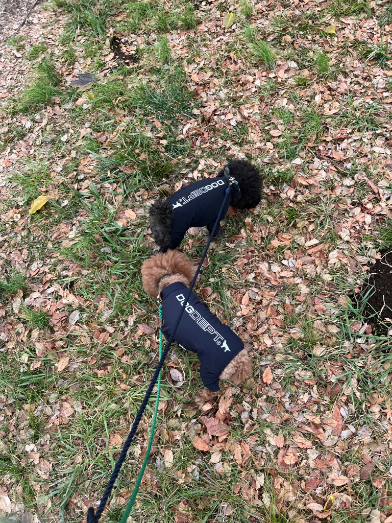 時間に余裕がある際には運動に重点を置く散歩だけではなく、犬たちが満足いくまで匂いを嗅がせ、行きたい方向を犬たちに決めさせる散歩をするようにしています。
