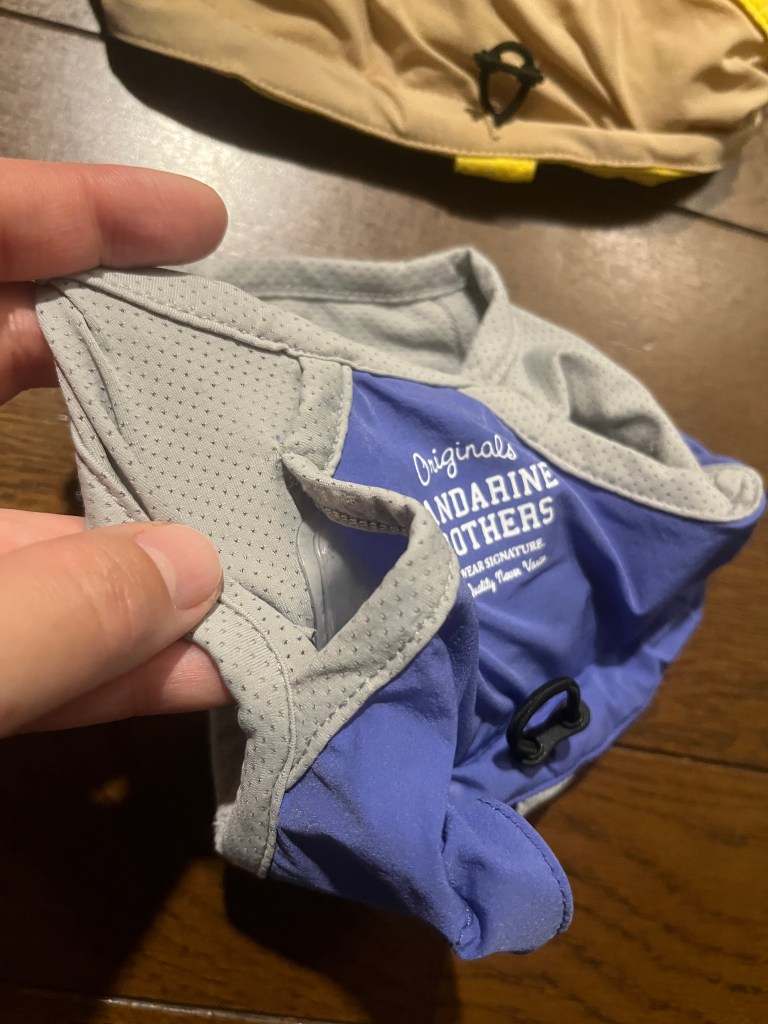 こちらが私の愛用しているクールベスト。薄手で超軽量。Sサイズのもので保冷剤が1つ入る。